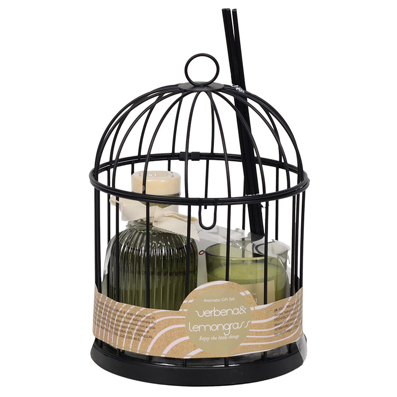 Scopri il nostro elegante set per l’ambiente (verde): una raffinata gabbietta in metallo che racchiude un profumatore ambientale con bastoncini, ideale per diffondere delicatamente la tua fragranza di melograno.